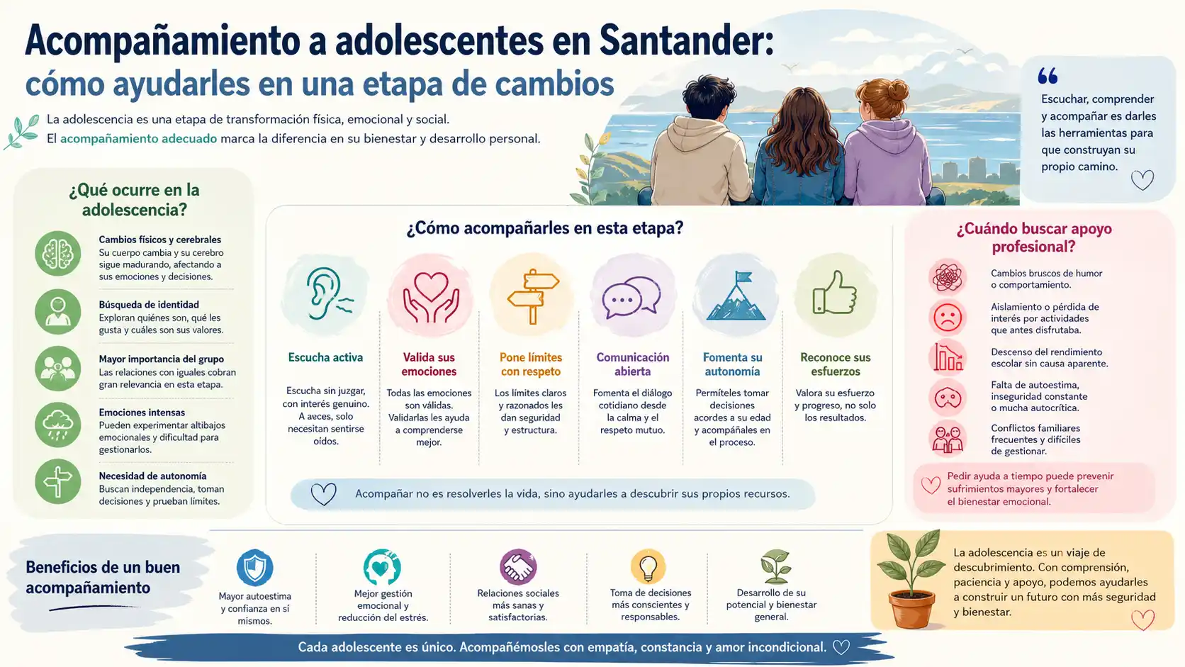 El acompañamiento a adolescentes en Santander permite comprender estas dinámicas desde una perspectiva más amplia, ayudando tanto a los jóvenes como a sus familias a interpretar lo que ocurre y a encontrar formas más constructivas de relacionarse.