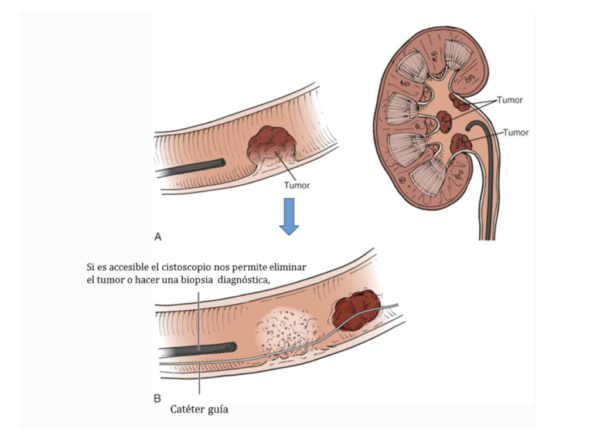 En muchos casos, se realiza una ureteroscopia, una prueba que consiste en introducir una pequeña cámara a través de la uretra y la vejiga para explorar el uréter y la pelvis renal. Esta exploración puede complementarse con la toma de biopsias para confirmar el diagnóstico.